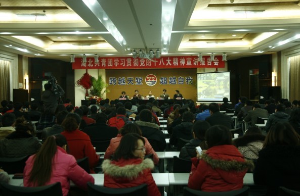 汪连天以“一次里程碑式的重要集会”为开场白,用“一个雄伟主题”、五个要害词进行了准确、生动、全面地解读十八大报告。汪校长的报告从理论立异、制度化的建设、民主化的推进和权力运行的监督等方面入手,以往史证今日,以今日释往史,融古揉今,收支中外,使宽大青年从加深对党史的了解,增进对十八大精神的领悟。