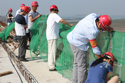 6月5日清晨,厦门马新大桥项目部青安岗9名队员,拿着扎丝、宁静网走向马新大桥北引桥右幅第三联箱梁,绑扎箱梁施工护栏,经过3个多小时的努力,260m的护栏就披上了绿色的新装,青安岗在用实际行动建立施工宁静屏障。这是自马新大桥青安岗建立以来不记得几多次了,用实际行动展示“宁静责任,重在落实”的宁静文化气氛。