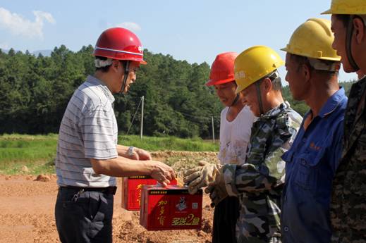 一到项目部,五公司列位领导徒步进入施工一线,与战斗在热浪滔滔工地的工人们亲切交谈,并亲手将消暑物品送到现场工人手中。陈崇林书记对紧张事情在酷暑中的员工们十分体贴,提醒各人要调解好事情时间,随时注意防暑。