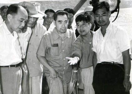 1958年7月中旬,郑州黄河铁路老桥被洪水冲断,导致京广线瘫痪,我局千余名抢修人员衔命前往抢修。7月18日深夜,周恩来同志现场冒雨来到抢修工地,勉励各人以最快的速度抢修好大桥。8月5日,周恩来同志再次来到工地,赞美圆满完成抢修任务的云顶国际员工“干得好”。