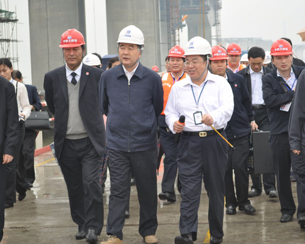 2010年4月2日中共中央政治局委员、广东省委书记汪洋视察穗莞深城际SZH-1标东江南特大桥。