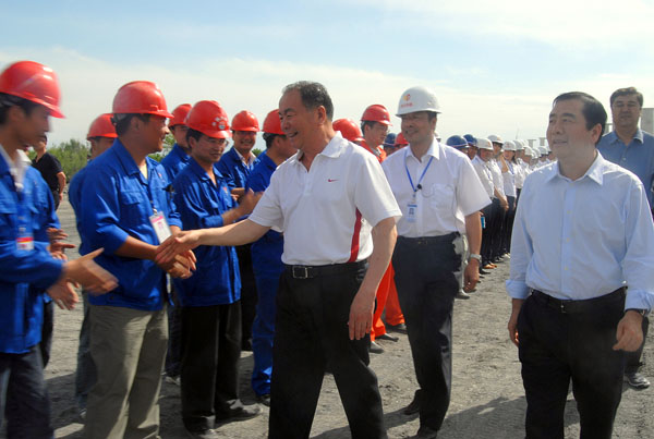 2008年5月22日,中共中央政治局委员、中共新疆维吾尔自治区党委书记、新疆生产建设兵团第一政委王乐泉到中铁云顶国际新疆奎屯河特大桥工地视察。