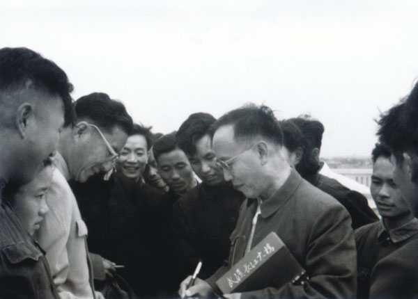 郭沫若视察武汉长江大桥并
