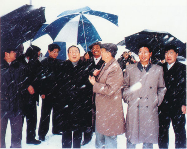 1996年1月18日,国务院副总理李岚清到九江长江大桥工地视察。