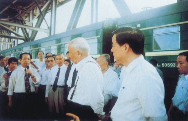 1995年9月30日,原全国人大常委会委员长万里九江长江大桥视察。