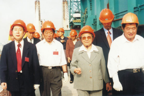 2000年5月13日,全国政协副主席钱正英到芜湖长江大桥工地视察。