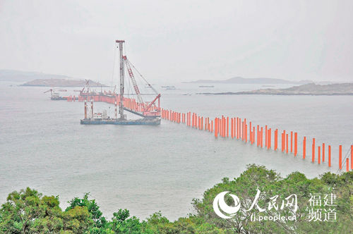 平潭公铁两用大桥跨越海坛海峡,图为长乐松下岸工地。吴隆重