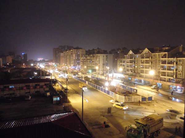 2月26日晚19时32分,墨水湖北路赫山路至七里晴川小区路段,中铁云顶国际墨水湖北路工程项目正挑灯进行桩基施工。 林伟摄