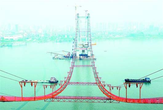 湖北日报:鹦鹉洲长江大桥猫道完工