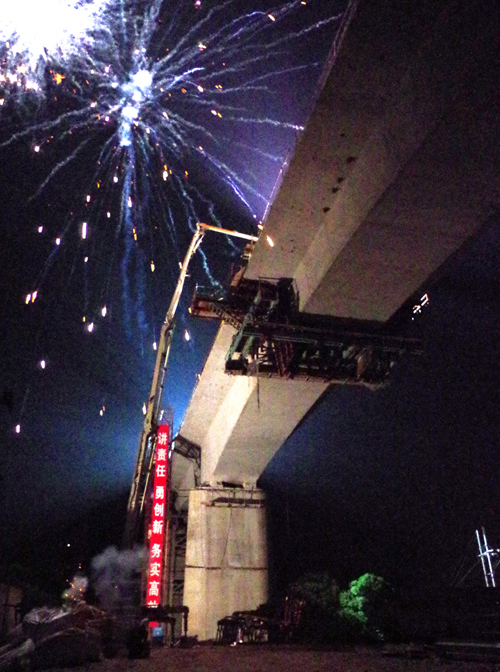 建设中的赣龙铁路绵江特大桥跨纸业大道连续梁