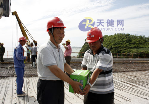 天健网消息(记者 王煜)立秋以来,“秋老虎”发威,大连市长海县多次泛起高温天气,大连市交通局卖力建设的长山大桥工地迎来了滔滔热浪。为确保长山大桥年末顺利合龙,明年6月实现通车,大桥建设者们在市交通局项目指挥部现场治理人员的领导下,顶烈日、战酷暑,坚守岗位,用辛勤汗水创立一个个奇迹。8月26日、27日中铁云顶国际二公司大连长山大桥项目部工会连续组织“送清凉到现场”运动,给奋战在一线的作业工人带来了丝丝凉意。