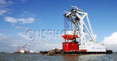 中国新闻图片网:港珠澳大桥CB05标非通航孔桥桩基施工已过半