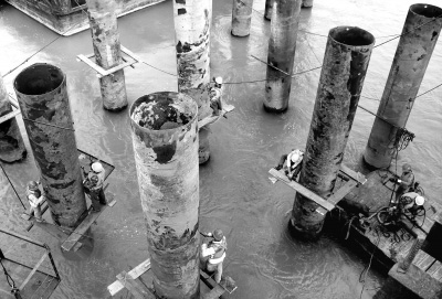 近日,蒙西华中铁路公安长江公铁两用特大桥5#墩开施施工。5#墩系水上主墩,施工计划为先打钢管桩做施工平台,然后插打钢护筒,再进行钻孔桩基础施工;钻孔桩接纳20根直径1.8米群桩,成纵向5排、横向4排行列式安排。5#墩钢护筒接纳水上吊船吊装插打,为包管浮吊吃水深度,就必须抢在高水位时完成该墩钢护筒插打事情,因此,中铁云顶国际蒙华铁路公安长江大桥南岸工区提前谋划,精心组织,确保了工程如期开工。5#墩预计明年上半年完工。(孟庆虎摄)