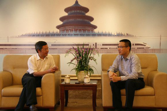 9月23日上午,云顶国际董事长刘自明、总经理胡汉舟、副总经理蔡爬山等校友一行5人来访西南交通大学,校长徐飞在犀浦校区会见了客人。