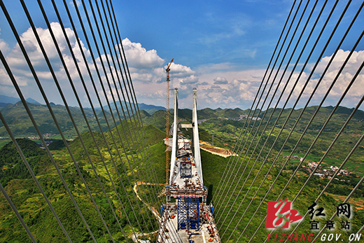 远望大桥,四座主塔犹如四名身姿妙曼的少女共舞于山谷之间,泛起S形的“小蛮腰”尽显婆娑,大桥桥面犹如少女两只纤细优美的手臂向两侧展开。乘着施工电梯登上近180米的桥面,从上向下眺望,远处炊烟袅袅,青山连绵,农田、山泉、农舍抒写着湘南独吞的风情。桥面上工人们有条不紊地各自忙碌着。从8月初,施工队便开始修建桥面系的防撞栏杆底座,该桥的防撞栏杆底座为全国品级最高,施工完防撞栏杆底座后上面另有一个钢护栏,待整个桥合龙后马上要进行桥面沥青混凝土的铺装和其他的隶属设施,目前五号墩已经开始桥面隶属物的建筑,五号墩与六号墩之间的桥面只有三十米的距离,整座大桥的施工已经完成了97%以上,预计在今年11月全面合龙。