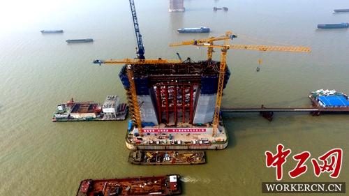 »¦Í¨³¤½­´óÇÅ28ºÅ¶ÕÖ÷ËþϺáÁºÍê³ÉÊ״ν½Öþ